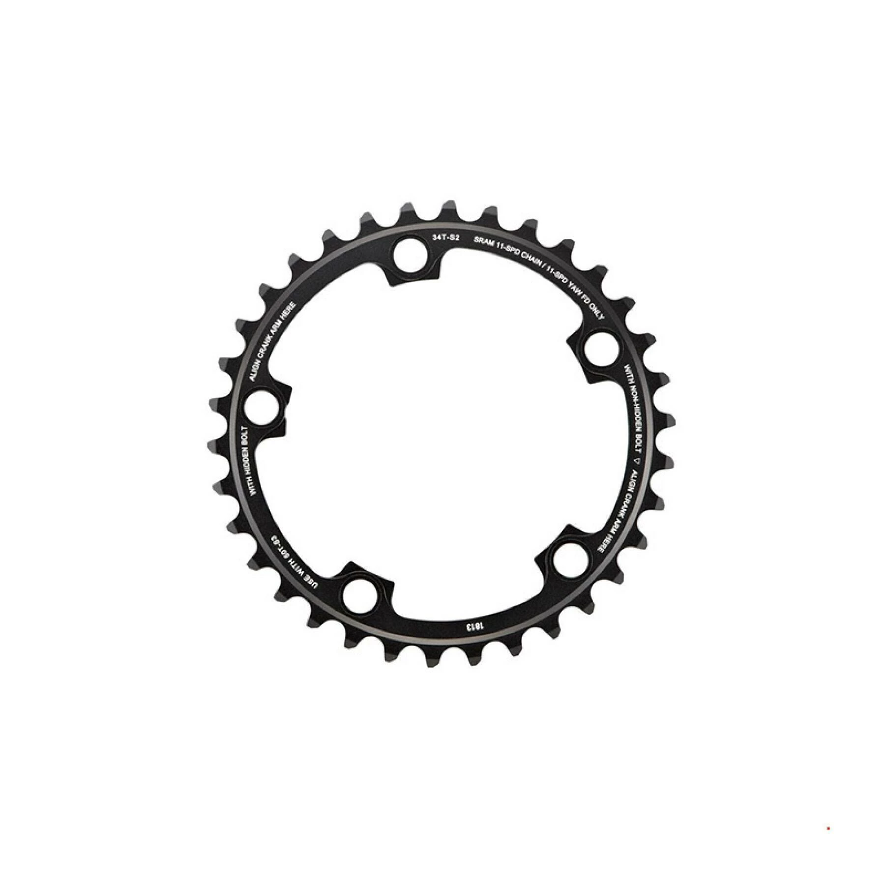 Plateau SRAM Red22 X-Glide, couleur noire, compatible avec Shimano et SRAM à 11 vitesses.BCD: 110mm. 5 trous.34 dents, compatible avec plateaux de 50 dents (ref. 103378)patibilité: 2×11 vitessespatible avec les dérailleurs SRAM Yaw.Matériau: aluminium 7075.